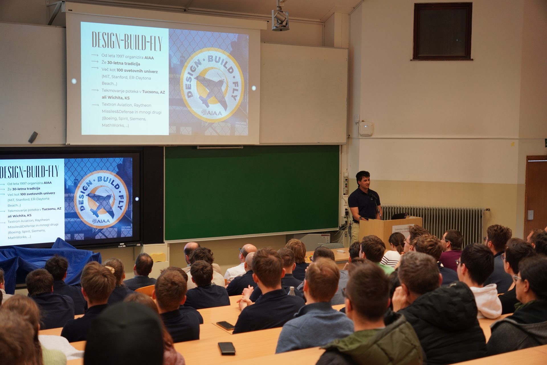 Tekmovanje Design/Build/Fly, ki ga od leta 1997 organizira AIAA, ima skoraj 30-letno tradicijo in vsako leto privabi več deset univerz z vsega sveta, vključno z nekaterimi najuglednejšimi univerzami.